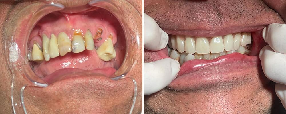 - Full-mouth reconstruction with dental implants